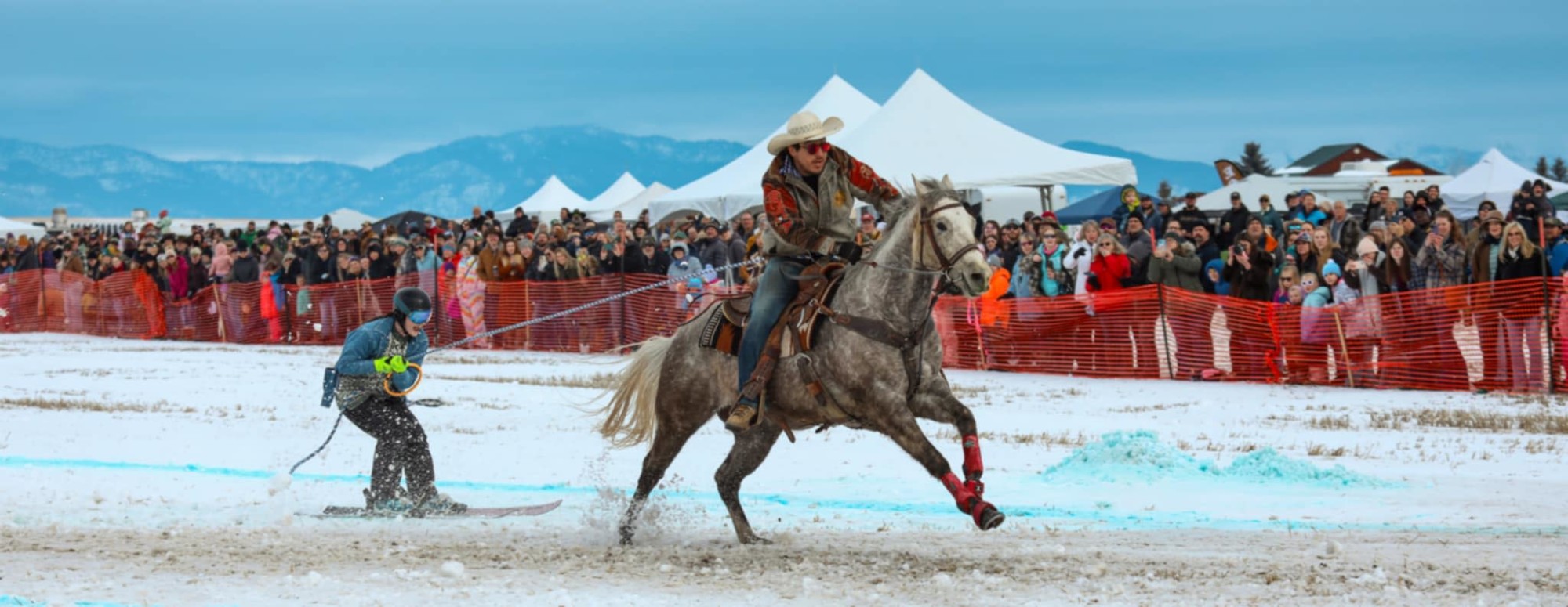 Held annually in the Flathead Valley, the Whitefish Skijoring Event is a high-energy winter festival featuring fast-paced skijoring racing, where horses, riders, and skiers compete at full speed through a professionally designed course.